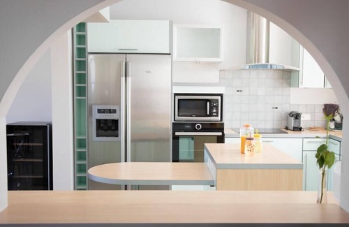 The house consists on the ground floor of a living room with flat screen and garden view, a large open kitchen with American fridge, multicooker, Nespresso coffee machine and all the comforts for cooking, a shower room Italian style and WC; upstairs two bedrooms with a bed of 160x200 (Simba mattress) one has a flat screen, a room with a bed of 90x190 and two electric beds of 80x200 and a flat screen; a bathroom with walk-in shower, bath, towel dryer and storage, a toilet, and a large closet.