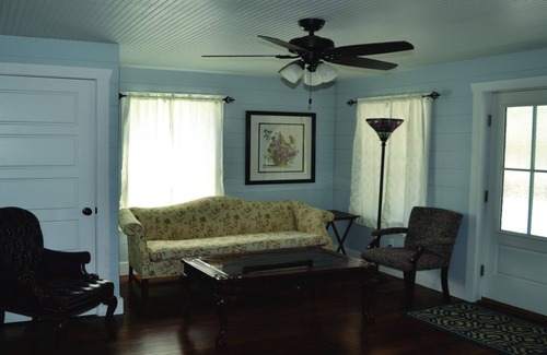 This cozy victorian home was completely renovated in 2018. Circa 1890, most original wood flooring was refinished and kitchen update with new refrigerator, stove, microwave, and cabinetry. Kitchen also includes a coffee maker and toaster. Gas fireplace in living room with flat screen smart TV and WiFi. Master suite on main floor, two bedrooms upstairs with another full bath and flat screen. All bedrooms have queen sized beds with sitting area. Laundry room provide for guest use with ironing board and iron. Outside is a private fenced in yard with patio, chairs, and side tables for enjoying the cool evenings. This property is located just a block from the historical walking tour and within blocks of several restaurants, tourist attractions, historic homes, and shopping opportunities.