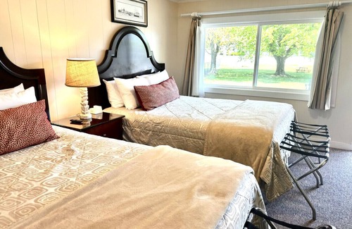 This comfortable double queen room features a full bathroom, dedicated parking, and amenities including a microwave, refrigerator, free wi-fi, and a Smart-TV. Also included is a large common greenspace with lawn chairs, propane grills, and a private dog-park. An ocean beach, several restaurants, local coffee shop, general store, and a specialty wine and cheese shop are within easy walking distance. You are also a two minute drive from the Acadia National Park Visitor Center and main entrance, and a five minute drive to downtown Bar Harbor, with its shops, restaurants, and beautiful waterfront.