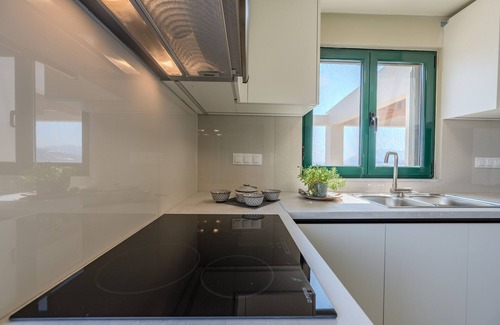 The open-plan kitchen is fully equipped, giving you the freedom to prepare and enjoy meals.