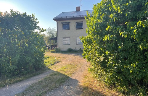 Experience comfort and convenience at Gamla Posten Huset, offering a spacious ground-floor apartment perfect for families or small groups. This well-appointed unit features two cozy bedrooms, a bathroom, and a private entrance with serene garden views.
