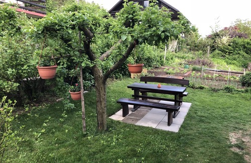 Garden view apartment with a big balcony and nice view on the garden and mountains. Free internet, kitchen, 2 bedrooms, bathroom, free parking, You can use everything in the garden, also vegatables and fruit. Free parking by the house, air condition in the apartment. Just 8 min with a car from Bled Lake. Airport is just 30 min away from our apartments. Beautiful nature is waiting for you to enjoy.