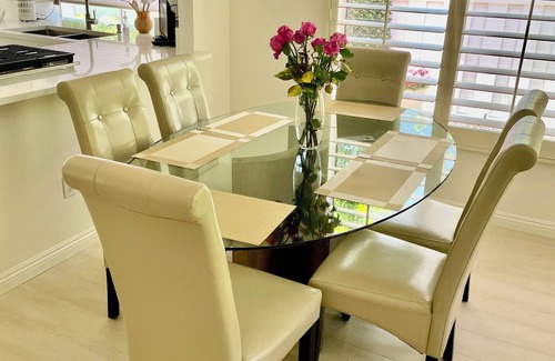 Nestled on 350 acres of lush landscape with refreshing breezes and stunning vistas, Ocean Hills Country Club is just four miles from the majestic Pacific Ocean. This serene haven glows with the charm of a Mediterranean village...white stucco exteriors and red tile roofs sparkling under San Diego's legendarily sunny skies. Our home is NEWLY RENOVATED, including an all new kitchen with quartz countertops, new cabinets, new appliances, 3 Smart TVs, new leather furniture, and new flooring throughout the house.