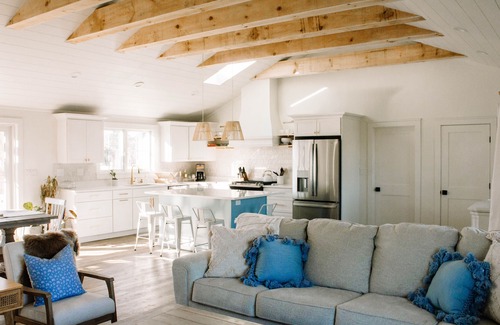 You are going to love the airy and open layout of great room that incorporates the kitchen, dining, and living. There’s a little porch to enjoy your morning coffee and and outdoor shower to wash the beach away in the afternoon. Enjoy some s’mores by the fireplace and hold a dinner in the garden.