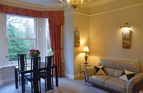 Our beautiful Edwardian property houses seven unique serviced apartments. Surrounded by lush lawns and overlooking Knutsford Heath, the apartments are conveniently close to Knutsford town while also providing privacy & comfort. 1st floor apartment with a lounge/dining room, fully equipped kitchen & bathroom, a bedroom with a king sized double bed and two twin bedrooms, in all over 1200 sq ft of accommodation. With on site convenient free parking. Accommodates up to six guests.