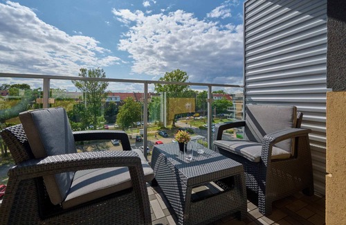 The apartment has a functional interior and a well thought out layout with the possibility of accommodating 6 people - great for families! The interior creates a cosy atmosphere thanks to its neutral colour scheme or fresh decor with bright furniture and accessories. The accommodation comprises a spacious living room, kitchenette, bathroom with shower and two bedrooms. The master bedroom is furnished with a double bed, while the second bedroom has a double sofa bed and a space for remote work or study, to suit all guests' needs. There is also a comfortable sofa bed in the living room. The apartment has a spacious balcony with garden furniture where you can enjoy your morning coffee with a beautiful view or relax in the fresh air after an eventful day. The living area, with a sofa and cable Tv, is the perfect place to relax and unwind. The apartment is fully equipped with all the necessary kitchen (microwave, toaster, oven, dishwasher) and bathroom (washing machine, hairdryer) appliances. The multimedia facilities include free Wi-Fi Internet connection and cable Tv. The apartment is ideal for any type of stay, especially if you appreciate a good location and beautiful interiors. Complimentary toiletries, towels and bed linen are provided for a good start to each night's stay. Parents travelling with a child can also book a cot for their little one. The apartment also has a private parking space in the garage, which is a great advantage in the city centre. The location of the apartment will certainly allow you to feel the atmosphere of Wroclaw among the surrounding attractions.