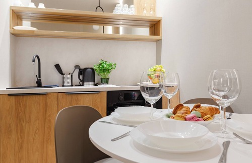 Gdańsk Coastal Escape Apartment #5 is a stylishly designed apartment offering a comfortable space perfect for relaxing in Gdańsk. It features a living room with a sofa bed and a mezzanine with a comfortable mattress, a kitchenette, and a bathroom. The apartment is equipped with a range of practical amenities such as free Wi-Fi, cable TV, iron, hair dryer, fridge with freezer, dishwasher, induction hob, oven, kettle, and kitchen accessories.