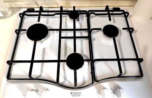 gas hob (Ariston), microwave, fridge, freezer, toaster, pots, pans, tablecloths, plates, cutlery, glasses, wine glasses, flutes, coffee mugs, breakfast mugs, cooking utensils, etc.
