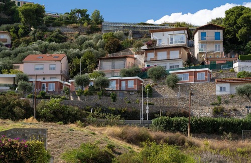 Small, modern resort "Baia dei Gabbiani", built in 2017. 6 houses in the residence. 500 m from the centre of San Lorenzo al Mare, on the outskirts, 3.5 km from the centre of Imperia (Porto Maurizio), 15 km from the centre of San Remo, on a slope, in the residential district, 200 m from the sea, 500 m from the beach, road to cross. For shared use: well-kept terraced garden, 1'600 m2 (fenced). Terrace, garden furniture. In the complex: reception, WiFi, table tennis, washing machine (for shared use). Stepped path (12 steps) to the house. Shop, grocery, restaurant, bar, bakery, café 500 m, bicycle rental 300 m, bus stop 6.8 km, sandy beach 500 m. Marina 200 m, cycle lane 50 m. Please note: residence with electric gates. Main road close by.
