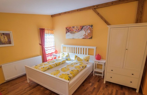 Das schöne 1-Zimmer-Appartement ist ausgestattet mit einer Küchenzeile (E-Herd, Kühlschrank, Küchenutensilien, Geschirr), einem Badezimmer (Dusche, WC) und einem Wohn- und Schlafbereich mit Doppelbett. Gerne wird Ihnen ein reichhaltiges Frühstück serviert, sofern Sie sich nicht selbst verpflegen wollen. Ein kostenloser WLAN-Zugang steht natürlich zur Verfügung. In unserem fränkischen Hofgarten können Sie gemütlich sitzen und den Tag bei einem Schoppen Frankenwein oder einem Bier aus der Region ausklingen lassen. Egal, ob Radler, Motorradfahrer, Wanderer, Urlauber, Schüler, Praktikant oder Arbeitnehmer. Sie sind herzlich Willkommen.