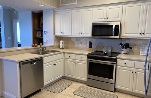 You may never want to leave but in case you do there is a poolside Tikki Hut Bar/Restaurant and excellent dining and family entertainment is a short walk away. Enjoy the fun park, golf, deep-sea fishing, diving, and snorkeling or just spend a relaxing day at nearby St. Andrews State Park or Shell Island where you can swim w/the dolphins. No traffic jams or cruising on Thomas Dr.(easy in and out).