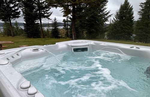 There is a wraparound deck that allows for you to really relax and enjoy those magnificent views. You will also find a gas BBQ grill and a Traeger grill! There's outdoor seating & a fire pit. Please note that some of the outdoor seating and fire pit may not be accessible during the winter months. The hot tub was newly added in 2023 and available for guests to use during their stay!