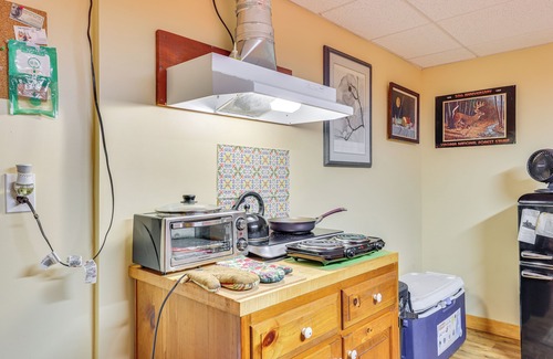 KITCHENETTE: Updated & well-equipped w/ 5-person dining table, coffee maker, toaster oven, microwave, full-sized refrigerator, water filters, cooking basics, dishware/flatware, Simply Ming Induction Burner, stocked pantry w/ essentials