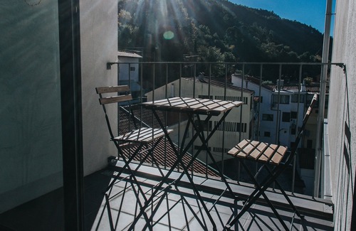 This apartment has a balcony with mountain and village views. It has an orientation with lots of light and sun and it is located next to a stream, listening to the running water.