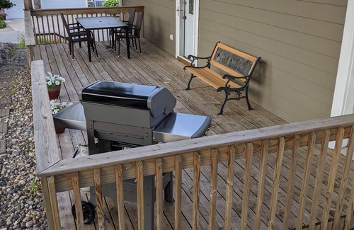 We hope you will enjoy this 2 bedroom 1 bath located within minutes of all activities in the Iowa Great Lakes! Nice residential area. Your own place and your own deck with a gas grill! Full kitchen including a dishwasher. There is also a washer/dryer and an attached single car tuck under garage for the bikes! Nicely furnished! Off street parking for two vehicles or possibly a boat! Sleeps 4...two queen beds.
