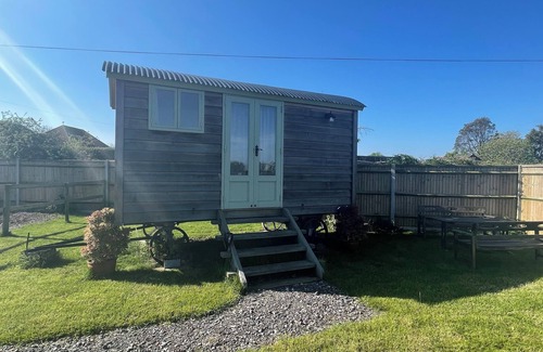 Come and stay at our beautiful shepherds hut facing across the fields on our working farm. Net of wood for the fire pit included with stay.