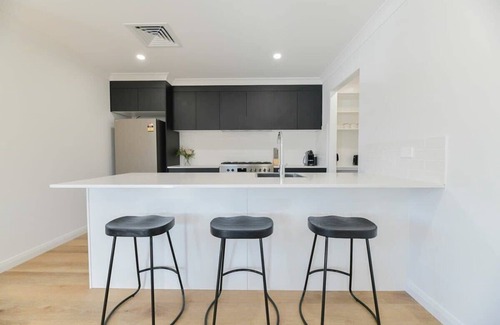 Embracing modern living, the dreamy matte black kitchen is perfect for nourishing all 6 guests and your stream of cherished guests. Bring your group together in one of the comfortable living areas where you can unwind with a cheese platter and valued company. Corporate professionals will also admire having their own deluxe bedroom & bathroom, free wifi plus a desk space, and a city centre location perfect for walking to work.