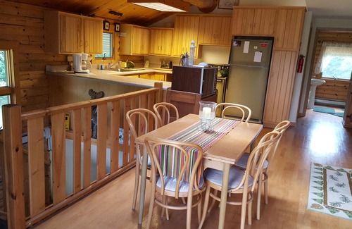 Sandy landing for easy access to river and bay. Perfect for canoeing, kayaking, paddle boarding, and boating. Rental comes with one boat slip at the dock. Walleye, Perch, Bass and record size Northern have been caught in the bay. Kids have enjoyed catching and playing with the many turtles and frogs that live in the bay. Hear the loons calling at dusk and watch the deer roam in the grass all from the balcony of the cabin. Savor your evening looking at stars or enjoying the 2 fire rings located by shoreline & the cabin.