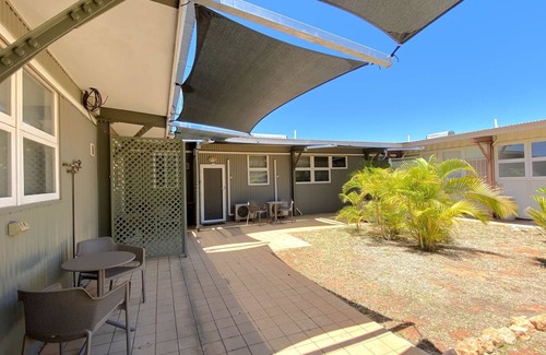 Getaway Villa 38-3 ticks all the boxes. It is a modern, spacious, fully furnished, self-contained 1x1 apartment, within a holiday village. Ideally located in the heart of town, it is a short walk to most attractions. It is comfortable, quiet, and affordable, and the perfect getaway for couples or business people, who wish to see what Exmouth has on offer at a competitive price and a touch of luxury. Free high speed reliable NBN Wi-Fi and parking are available. Babies/toddlers are welcome and catered for.