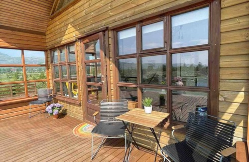 Two bedroom cottage with the third bedroom in the loft situated on a private land in a beautiful and calm environment close to Geysir. In fact, one can see Geysir/Strokkur erupt through the living room window. There is a gated entrance so there is no external traffic.