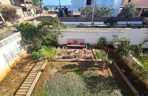 Quico's house is a semi-detached house facing the Mediterranean. It has an impressive elevated terrace on the first floor which is accessed directly from the living room. The rest of that floor is completed with two bedrooms (one with a double bed and the other with two singles), a joined but independent living room and kitchen, and a bathroom with a shower and screen. On the lower floor is the third room, with independent access and a double bed and two single bunk beds; and the lower garden equipped with relaxation areas where you can enjoy the aroma of jasmine and the east wind fresh from the sea.
