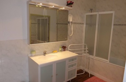 This gite has a garage, private land in the owner's enclosure and a covered terrace with garden furniture, barbecue and sun loungers. On the ground floor, spacious living room with fireplace equipped with a pellet stove (pellets provided free of charge), flat screen TV, DVD player and wifi internet access, fitted kitchen area, laundry room with toilet. On the 1st floor, 1 bedroom with 1 double bed and private bathroom with wc, 1 bedroom with 1 single bed, 1 bedroom with 2 single beds, shower room with wc, separate wc. Electric heating included. Prices all charges included.
