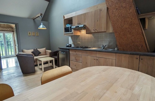 The pluses: View of the countryside, quiet On the first floor, above an old barn, cozy studio with a magnificent view of the surrounding countryside.