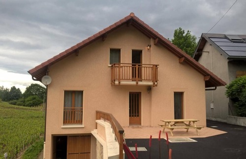 Detached house on 2 levels. Ground floor: large living room with kitchen fully equipped and integrated living and stay (flat screen TV). Connection internet wifi. 2 bedrooms (1 bed 2 persons 160x200cm / 1 2 bed 160x200cm). Bathroom (shower Italian + large corner bath). Independent WC. Laundry. Cupboards (dressing closets). 1st floor: 2 bedrooms (2 beds 1 person / 2 beds 1 person). Bathroom (shower). Independent WC. 2nd living room with TV, sofa, table dining... Ideal for a children's games area. Terrace with garden furniture. Rental of sheets and toilet linen. Option end of stay housework. Not fenced. Parking on the property. Comfortable well equipped cottage vast cellar carefully restored. Contemporary stamp. Quality and functional furnishings. Immediate environment of quality. Natural surroundings of the Savoy vineyards for a quiet holiday conducive to relaxation and discovery of the vicinity of Chambéry. Large sun terrace.
