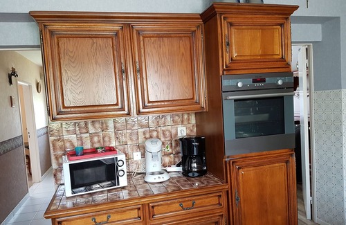Quality accommodation with independent entrance, fully equipped kitchen (with fridge, oven, microwave, coffee maker and Senseo, dishwasher) with wood stove (wood provided), living room with TV, bathroom with shower, separate toilet (elevated) ), 2 bedrooms (one bedroom with double bed and cot overlooking the terrace, one bedroom with double bed and single bed).