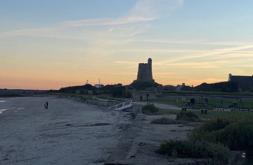 Located in the town of QUETTEHOU, at the place called Le Rivage, 40 m from the beach and the sea, you will enjoy an exceptional setting and a view of the Fort HOUGUE and the many oyster beds.