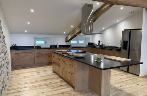 You will enjoy high-quality bedding and a fully equipped kitchen. The gite is equipped with full air conditioning, high-speed internet, a TV, DVD player, washing machine, and barbecue.