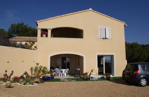 Gite of 80 m2, 3 bedrooms (2 beds 140 beds in 90 + 2, + extra bed 90), 1 large living room / dining room / kitchen, 1 bathroom with 2 sinks and walk-in shower, WC separate, large terrace sheltered from sun and mistral.