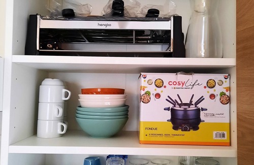 This 3-bedroom, 1-bathroom rental features a sofa bed and a desk. Bathroom amenities include a hair dryer, towels, and toilet paper. The kitchen is equipped with an oven, a stovetop, and a refrigerator, as well as a coffee maker, an electric kettle, and a microwave. And because there's a washing machine, you can go a bit lighter on your packing.