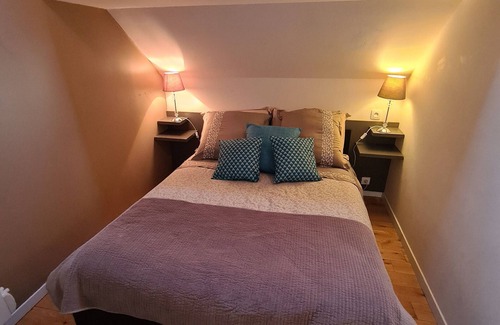 Upstairs, 2 bedrooms with double beds (140 cm) with private shower room and WC, a bedroom with a 90 cm single bed, a dressing room and wardrobe.