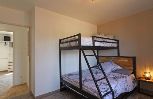 Bedroom (bunk beds for 2 people 140 x 200 cm and 1 person 90 x 200 cm, TV).