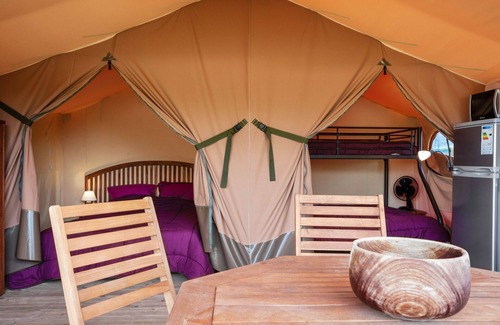 The independent lodge has 2 bedrooms. One with a double bed and the other with a double bunk bed at the bottom and single at the top. The Victoria Lodge gives a real feeling of freedom, a stay surrounded by nature. You will wake up to the song of birds.
