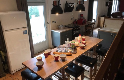 Country house completely renovated for 8 to 10 people, quiet, near castles, hiking trail and Loire by bike. On the ground floor, kitchen, living room dining room, bathroom / WC, on 50 m2. 3 bedrooms upstairs + bathroom / WC. Outdoor spaces with garden, parking for 2 to 3 cars. Garden Lounge. Provision of chairs and barbecue. Beds made on your arrival. Towels provided.