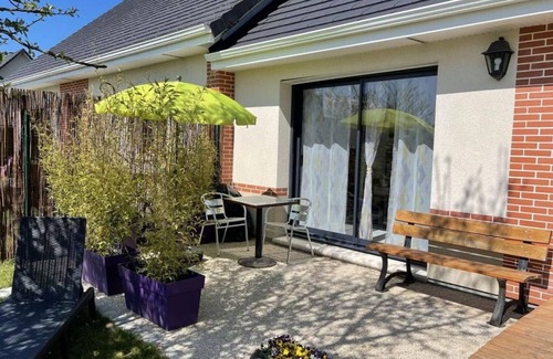 New terraced house on one level: - entrance with wardrobe, - open fitted kitchen (oven, single sink, dishwasher, microwave, 4-burner ceramic hob, Senséo coffee maker) on - living room with convertible sofa (sleeping 140x190cm comfortable), TV 125cm, - 1 bedroom (1 double bed 140x190cm), wardrobe, - bathroom with walk-in shower (shower chair for people with reduced mobility), wc with grab bars , washer dryer. Baby equipment: cot, high chair, bath. Exterior: - private enclosed garden, terrace (with privacy screen to preserve privacy with respect to the adjoining gîte), garden furniture, barbecue. Between Etretat and Honfleur - Deauville, away from the village, 4 km from Le Havre, a charming place in the style of the region. Gite adjoining another gite with a private, enclosed garden (the back of the house is not accessible and acts as a passage between the gite next door and the owners' house located 30m away). Poultry, goats and a pig evolve in an enclosure which adjoins the gîte. The house is located in a dead end, in the heart of the Ecqueville battery with its blockhouses and underground passages from the last war: possibility of visiting the blockhouses and going to see the animals (ponies, alpacas, pigs) in the presence of the owners. You will appreciate the calm of the countryside (farm nearby with sale of milk, butter, cream, etc...). The city of Le Havre is 10 minutes away with its beach, sea walks and port visit. All amenities are close to the gîtes: supermarket 5 mins away, golf course 2 km away, market on Sunday mornings. Rental charges not included in your rental: : - tourist tax. Bedroom(s) on the ground floor, Enclosed garden, Television, Electric heating, Gite on one level, Baby bed, Linen provided, Internet connection, Private parking, All inclusive, Washing machine, Dishwasher, Animals on site, Terrace, Animals accepted, Tumble dryer, Microwave, Flat screen TV, Garden furniture, Barbecue. Unless stated, services such as cleaning, bed linen, towels etc. are not included in the price of this rental. If pets are allowed (information in the advertisement), charges may be applicable. Only equipment mentioned in this advertisement are present. Equipment not mentioned are not considered to be present.