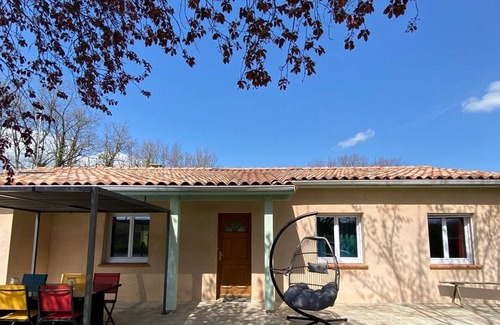 THERE are places like this that breathe well-being, generosity, detail, comfort and more generally a strong desire to welcome you. Nestled in the heart of the Fronton vineyards, this new address benefits from a strategic location between Toulouse and Montauban, where wine is enjoyed with pleasure, like walks in the vineyards or in the woods. And if you decide to stay on site, then take advantage of the jaccuzi, moments of relaxation on the terrace and why not a few games of table football, petanque... just to share moments with your family. Entirely on the ground floor, the accommodation includes a living room (integrated kitchen with combined microwave oven, hob, fridge, freezer, dishwasher), living room (sofa and 3 armchairs, sound amplifiers, TV), games and reading area (numerous board games, table football), indoor Jaccuzi area for 6 people with a unique view of the vines and opening onto the South terrace. A closed corridor leads to the 3 bedrooms, bathroom and separate toilet (hair dryer) Emerald bedroom with 2 beds 0.90, a large dressing room, Rubis bedroom with 180 bed, large dressing room, Imperial Topaz bedroom with 180 bed, large dressing room and desk. Comfortable house: each room is equipped with a double USB socket, combined USB electrical socket and Led footboards and the whole house is equipped with duct-type reversible air conditioning with the possibility of regulating the temperature, each room being independent. South-facing terrace with large table under a pergola, barbecue and plancha. Garden furniture under the trees. Small terrace to the east with table and bench for morning coffee in the sun.! Land of 2000m2 Petanque Ping pong table 2 car shelter Wheelchair accessible Optional services to be paid on site and to be reserved before your arrival: - End of stay cleaning: 85.11€ per stay Unless stated, services such as cleaning, bed linen, towels etc. are not included in the price of this rental. If pets are allowed (information in the advertisement), charges may be applicable. Only equipment mentioned in this advertisement are present. Equipment not mentioned are not considered to be present.