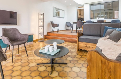 House adjoining another house. Entrance. Independent toilet. Shower room (washing machine, dryer) Living room with kitchen open to living room (oven, induction hob, microwave, refrigerator with freezer, dishwasher). Second living room with lounge area (2 steps lower) (TV, fiber internet access). On the 1st floor, Bedroom 1 (2 twin 80x200 beds), bedroom 2 (3 90x190 bunk beds), separate toilet, bathroom, bedroom 3 (1 160X200 bed). On the 2nd floor, bedroom 4 (1 140X190 bed + 1 90x190 bed), bathroom with toilet and bedroom 5 (1 140X190 bed). Baby equipment on request. Bed sheets and towels included. Beds made on arrival. Cleaning service extra. Electric heating extra. Private enclosed garden. Terrace. Garden Lounge. Barbecue. Deckchairs. Sandbox. Bicycle storage. No private parking, parking on the street or in the small church square opposite the gîte. No smoking inside the gîte. With its pretty shaded square and its medieval bridge and its fortified bell tower, the village of Port Bail is remarkable. You will be able to take full advantage of these treasures and the shops because the gîte is in the center of the village and you just have to cross the alley to discover the weekly market. The cottage benefits from a private enclosed garden at the back, facing south, very quiet and intimate. The large living room with its glass roof is the heart of the house where guests enjoy meeting at any time of the day. Spread over 3 levels, the residence is suitable for accommodating 2 to 3 families, including a toilet on each level. On the ground floor, the large walk-in shower and double sink are perfect for returning from the beach. Indeed, the sea is close and on the other side of the harbor (2km), you will discover a splendid beach (sand yachting). An ideal living environment for your stay. The price does not include: charging an electric or hybrid vehicle. Linen provided, TV, Washing machine, Dryer, Dishwasher, Microwave, Freezer, Sheets provided, Baby equipment, Enclosed grounds, Internet access, Garden room, Barbecue, Terrace, Garden, House, Adjoining, optional cleaning service. Option to be paid on site: End-of-stay cleaning package: €100. Unless stated, services such as cleaning, bed linen, towels etc. are not included in the price of this rental. If pets are allowed (information in the advertisement), charges may be applicable. Only equipment mentioned in this advertisement are present. Equipment not mentioned are not considered to be present.