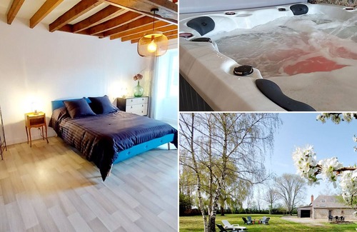 Mazagran is a very comfortable, spacious gîte, with neat and delicate decoration. A spa area is installed in the extension of the house. Each door and window is a view of the garden and the countryside, each time an opportunity to see a jay, a dove, a woodpecker, a squirrel or a rabbit spring up... The song of the birds is in the background, soothing . For two for a break, or with the family, the 3 bedrooms can accommodate up to 6 people. The living room offers a beautiful 39m² space with a dining table for up to 8 people, a lounge area in front of the fireplace with insert and sofas comfortable, flat screen TV, board games. The garden offers more than 1,000m², with shaded areas under the trees, outdoor dining furniture, and relax, charcoal barbecue, outdoor children's games. Shops: Vaiges, 4.5km (supermarket with wide opening beaches, fuel, ATM, butcher, bakery, restaurant). Possibility of delivery of meal trays: restaurant-caterer Le Menhir in Bazougers. Activities, hikes, visits, the essentials: site of the caves of Saulges (museum of prehistory, climbing, restaurant, hiking, swimming, heritage), Sainte-Suzanne, Laval (26km), Château-Gontier (35km) with its port of boating - rental of bicycles, boats.. the Refuge de l'Arche - animal park... ULM base 2 min. where you can make baptisms in pendulum. Beauty salon, massages and treatments less than 1 km away at "Haras de rêve". Hikes from the cottage. Indoor swimming pool and wellness area, course and learning to swim in Meslay-du-Maine, 12km (all shops as well). Bathing site at the leisure center of Saint Denis du Maine. Fishing in Bazougers or Saint Denis du Maine. The owners will be able to guide you to make the most of your stay, whether for activities or the discovery of numerous local producers (vegetables, wool, cheese...). Professional stays: 4 adults maximum (3 bedrooms and 4 beds). Compulsory cleaning €70 for stays of 1 to 14 nights. Composition of the gîte - Ground floor: fully equipped kitchen 12m² (dishwasher, gas cooker and electric oven, microwave, kettle, thermos coffee maker and Bosch pod coffee maker, toaster, fridge) - Living room 39m²: dining area, 2 sofas , TV - WC with washbasin - Laundry room: washing machine, chest freezer, ironing board and iron - Shower room with walk-in shower, basin, storage, electric towel dryer, hair dryer - Bedroom 23m² 1 bed 160*200, storage - 1ST FLOOR: landing play area with children's table football - Separate WC with washbasin - Bedroom 9m² 1 bed 160*200, storage - Bedroom 14m² 2 beds 80*190, storage. Private spa area: 4-seater spa with relaxation lounge for 4 people, access from outside the house. Mood light. Beds made on arrival - Kitchen linen provided. Baby equipment: high chair, free-standing bath, booster seat, changing mat, blender, travel cot, toys. Wifi accessible throughout the accommodation. Options: cleaning €70 for stays of 1 to 14 nights - Bathroom linen €5/pers Gas central heating included. The cottage is adjoining the owners' house, each with their own private living space. Pets not allowed. Weekend booking: Friday 4 [hidden] to Sunday 4 [hidden] Follow this gite on Facebook: @gîte_mazagran_en_mayenne_avec_spa No specific equipment. Ground floor: 1 bedroom, bathroom with walk-in shower, separate wc 2m². All rooms on the ground floor are without steps. Optional services to be paid on site and to be reserved before your arrival: - End of stay cleaning: 74.47€ per stay - Towels: 5.32€ per person per stay Unless stated, services such as cleaning, bed linen, towels etc. are not included in the price of this rental. If pets are allowed (information in the advertisement), charges may be applicable. Only equipment mentioned in this advertisement are present. Equipment not mentioned are not considered to be present.