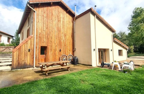 Gîte of 150m² (ground floor & first floor), opening onto the bright living room with TV / relaxation lounges, with direct access to the terraces and a pellet stove (on request 15kg bag of pellets: €8). The independent kitchen opens onto the dining room. On this level, there is the laundry area and a separate toilet. Upstairs, 3 bedrooms are fitted out: the Ethnic room with 2 90 cm beds, the Marine room with 2 90 cm beds, and the Blue Family room with 1 160 cm bed with a children's area with bed and games & a shower area with sink. On this level, there is a quiet area with library and a bathroom (double sink, shower, toilet). On the 2nd level, the 4th Coconning bedroom is nicely furnished with a 160 bed. Between the Loire and the Rhône, river and fields, discover this peaceful place for a rejuvenating holiday where you can enjoy nature thanks to the private grounds of over 700m² with the garden opening onto the countryside, the beautiful wooden terraces with garden furniture, the pretty gravelled courtyard, the hikes starting from the cottage, ... Enter "Au fil du Gand", very comfortable, ultra-spacious accommodation with beautiful volumes to share happy moments around the beautiful dining table, to play or relax in the various furnished areas. Here you will find the atmosphere of a cosy & cozy family home! To make your stay even more enjoyable, the beds are made upon your arrival.