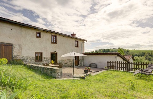 Gite equipped with all the necessary comfort of 95m² (on the ground floor + first floor): large living room with equipped kitchen and dining area, lounge with wood stove, 2 bedrooms equipped with duvets, 2 toilets and a bathroom with Italian shower. The price includes charges (heating and electricity). Restored with traditional materials and respecting the environment, you will be seduced by the interior character of this cottage: terracotta tiles, wooden floors and walls, lime plaster, exposed beams ... combined with careful decoration for a cozy and warm atmosphere. The living room opens onto a terrace and a private enclosed garden of 200 m², tastefully furnished by owners who are passionate about nature and gardening. The cottage and its land are accessible by a staircase. You will also have a parking space and will have access to the land shared with the owners. Sheep and horses on site, for the children's enjoyment...Located at the top of one of the hills of the Monts du Lyonnais, Virigneux is often cited for its calm and gentle way of life! Balneotherapy 10 km away, walks, discovery of heritage, hat museum... there is something for everyone!