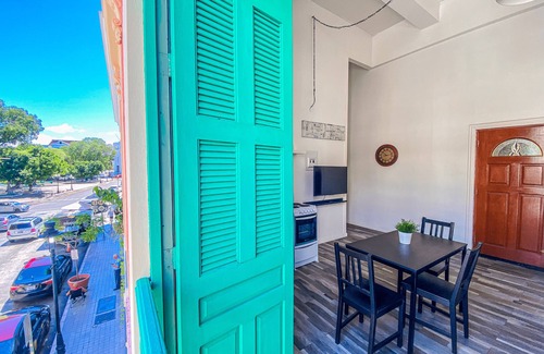 Localizado estratégicamente en el centro de la ciudad de Ponce, este apartamento/estudio le brinda la oportunidad de disfrutar de la arquitectura colonial de la zona y de la vida diurna y nocturna de la ciudad. El apartamento se encuentra en el segundo piso (accesible por escaleras), para mayor privacidad.