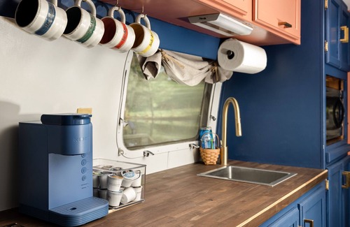 All the extras have been tastefully added to this vintage Airstream. The host offers a superb coffee bar!!!. Comfortable, fluffy bedding, warm rugs... All you can hope for while taking in the fresh air and starry sky with no light pollution. And don't forget smores made by the fire in your Solo firepit.