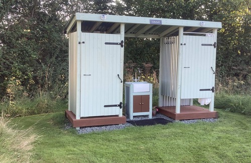 We have taken every care to offer our customers a unique experience. We wanted to retain the camping with a glamorous twist. The 5M Bell Tent has everything you could want and outside you will find a bespoke hot shower, vanity unit with hot water and a compost toilet which is simple and easy to use with no odour whatsoever and very environmentally friendly for your exclusive use - no sharing. We have created your own personal kitchen which is stocked with everything from an egg cup, bottle opener in fact as a guest commented "you have thought of everything". We provide tea, coffee, sugar on your arrival just in case. There is washing up liquid, antibac cleaner and soap and salt & pepper grinders and oil for your convenience.