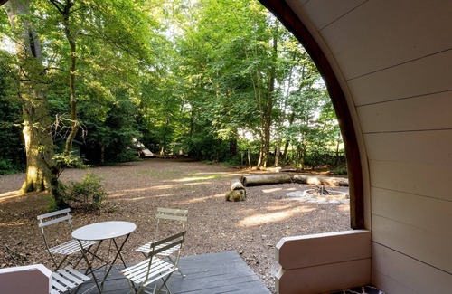 Nestled in a magical woodland clearing in southern England, this charming glamp site is perfectly located halfway between London and Bath. Set on 10 acres of private ancient woodland near historic Newbury, the cozy Daisy Pod sleeps 2 adults in a double bed and 2 children on fold-out Z-beds. It offers an ideal base for exploring or relaxing in nature. Guests have full access to the woodland, where kids can build camps, enjoy the tyre swing, and gather fallen wood for fire pits. The pod features an outside decked seating area, private toilet, hot shower, and sink. Inside, it’s equipped with electricity, heating, and a fridge, plus an outdoor cooking station with a gas stove, BBQ, crockery, cutlery, pans, tea, coffee, sugar, milk, bottled water, kettle, and toaster. All bedding and towels are included. Nearby, a communal undercover seating area and large brick firepit provide additional outdoor comfort. The nearby village of Woolton Hill offers shops, a post office, three pubs within walking distance, and a monthly market. Attractions around Newbury include Highclere Castle (Downton Abbey), 4 Kingdoms Adventure Farm Park, The Chase nature reserve, Newbury Racecourse, museums, and canal boat trips to Hungerford. Surrounded by scenic walks and cycling trails, there’s plenty to enjoy outdoors without needing to drive. Please note free-roaming birds and dogs may approach. Guests should bring their own wood, charcoal, and tea lights.