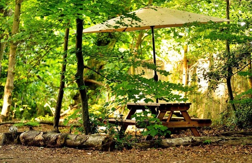 Set in a magical private woodland on the Hampshire and Berkshire border near Newbury, these charming pods provide a peaceful retreat for couples and families. The pods sleep 2 adults in a double bed and 2 children on fold-out Z beds, making them perfect for exploring the local area or simply relaxing in nature. Guests have full access to the woodland, where children can build camps, play on the tyre swing, and gather fallen wood for the fire pits. The large six-meter bell tent is bright and airy, with a double doorway, furnished in a Bedouin style with cushions and rugs. It features a double bed for adults and fold-out Z beds for children. Privacy is ensured with a nearby toilet, shower, and sink, and an outside decked seating area offers a cozy spot to enjoy the outdoors. All bedding, towels, cooking utensils, and a fire pit are provided, creating a complete glamping experience. This off-grid site offers a quiet, natural environment with no electricity—although guests can have their phones charged in the owners’ house if needed. Inside, there’s an indoor wood burner for warmth, along with a gas stove, BBQ, crockery, cutlery, and bottled water. The woodland setting is full of secret passages, wood sculptures, and wildlife, offering a magical atmosphere for both children and adults. The site is located in the village of Woolton Hill, which has a shop, post office, three pubs within walking distance, and a monthly village market. It’s an ideal base for exploring nearby attractions such as Highclere Castle (famous as Downton Abbey), the National Trust’s The Chase nature reserve, Newbury Racecourse, and canal boat trips to Hungerford. Surrounded by scenic countryside, there are plenty of walking and cycling trails to enjoy right from the site, making it easy to explore without needing to drive. The area offers a variety of outdoor activities and family-friendly attractions, ensuring a memorable stay in the heart of nature. Please note that the site is home to free-roaming birds and dogs, which may approach the accommodation, so it may not be suitable for those uncomfortable with wildlife or animals. Guests should also bring their own wood, charcoal, and tea lights to enhance their outdoor experience. This woodland glamping provides a unique, tranquil escape into nature’s beauty.