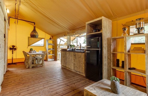 Glamping safari tent for five persons is located in Uden. Glamping safari tent for five persons provides accommodation, featuring Parking, Pet Friendly, Security/Safety, among other amenities. This House features Parking, Pet Friendly, Security/Safety, to make your stay a comfortable one.
