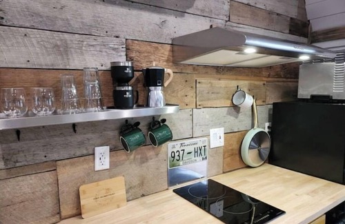 Off-grid Tiny Homes located minutes from Center Hill Lake and Caney Fork River. Water is solely sourced from captured rainwater that is then cleaned and purified on site. Multiple covered areas for gathering with friends or savoring your morning coffee. Enjoy cooking in nature using the outdoor kitchen equipment with a cooler stand, mini fridge, charcoal grill, and propane griddle. Teardrop driveway for ease of use in case you decide to bring your boat! EV charger onsite as well.